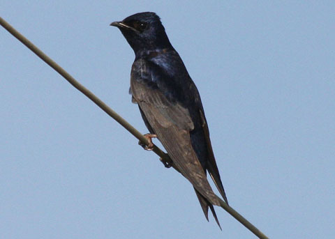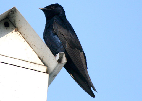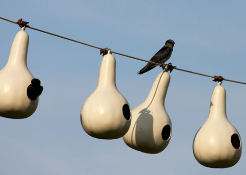 a large swallow that nest colonially in cavities or (nowadays) in apartment-style birdhouses or clustered gourds supplied by humans; strong sexual dimorphism; like all swallows, catches insects on the wing.