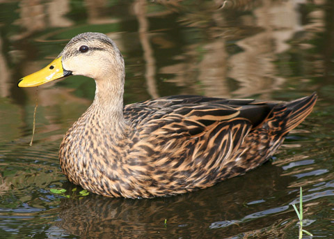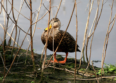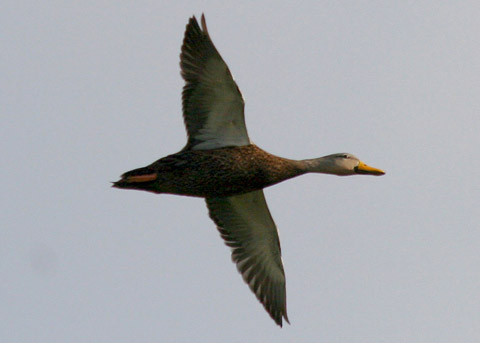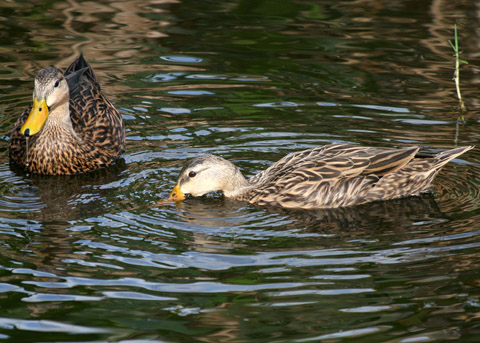 very closely related to Mallard and Black Duck; however, unlike the Mallard (but like the Black Duck), this species does not show strong sexual dimorphism; instead, males and females look quite alike; common in ponds and marshes throughout Florida, USA.