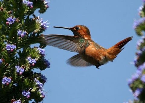 Notes: during his courtship "dance" starting about 30 feet above the ground, a male dives repeatedly in shallow arcs that culminate in a steep climb followed by a dive downward nearly to the ground accompanied by a loud "vrrrrip" sound made by his tail feathers;
