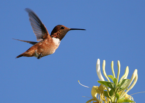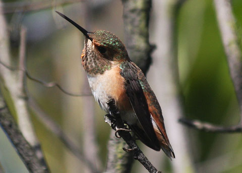 male showing neon orange throat in sun (California, USA; 2007-08-19) |