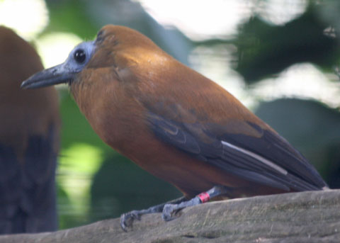 Capuchinbird Perissocephalus tricolor Native Range: South America Notes: a stocky and peculiar looking bird with a bare blue face and a rather large bill; found in humid rainforests mostly north of the Amazon River.