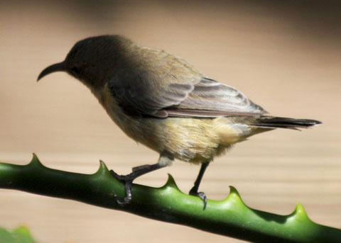 female; long decurved bill; drab brown plumage(Zoo; 2012-10-23)