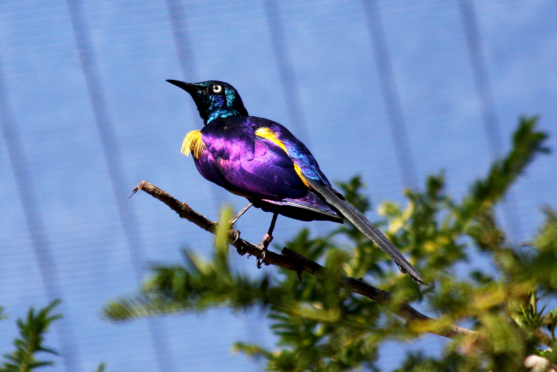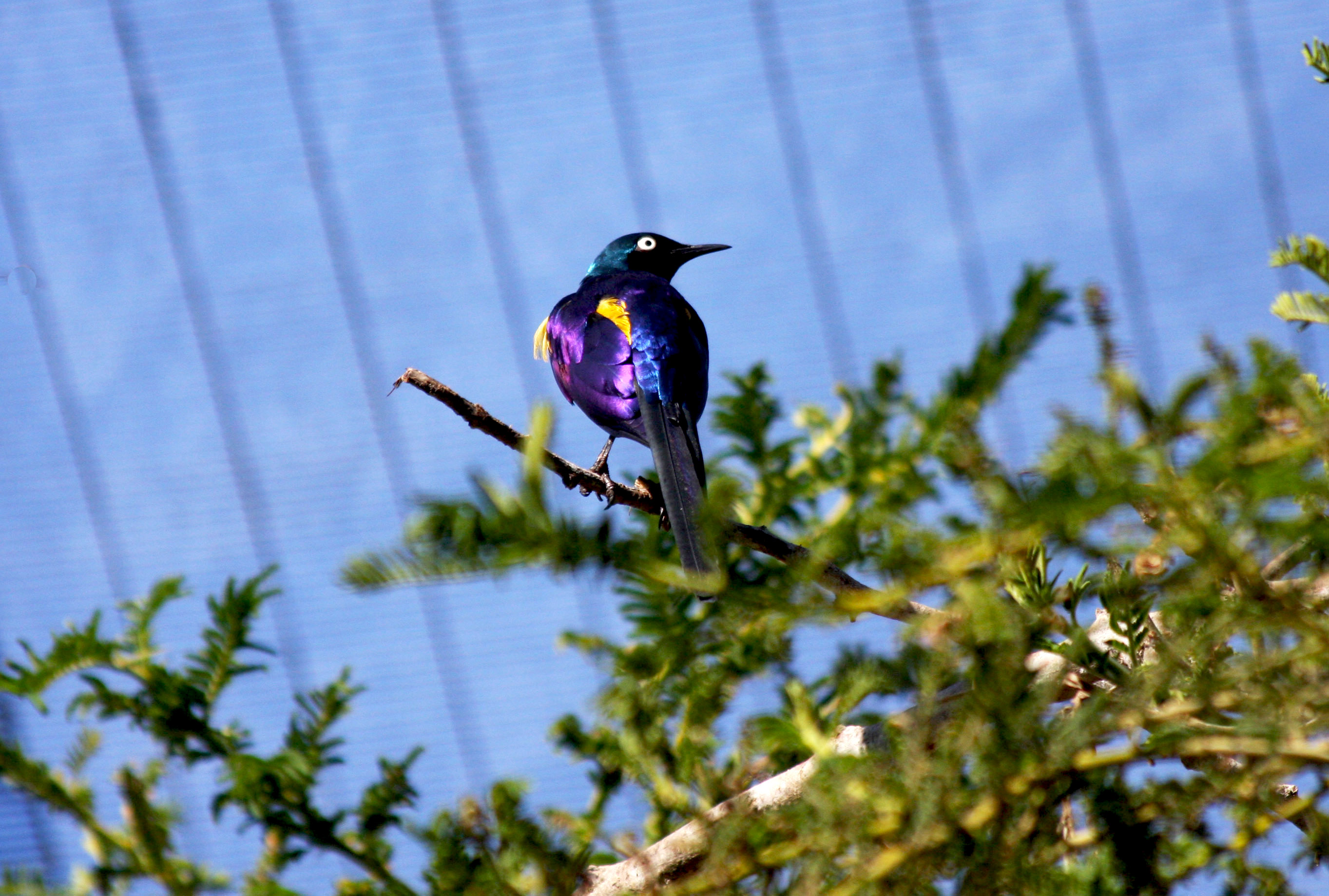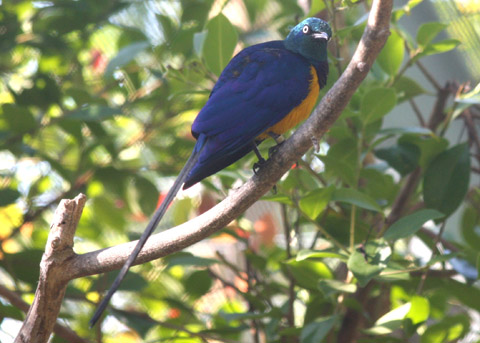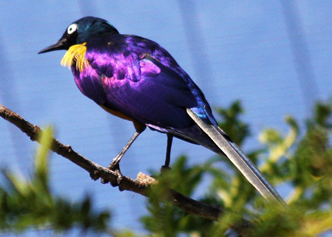 glossy plumage; bluish head and back; purplish wings (Zoo; 2008-10-21)