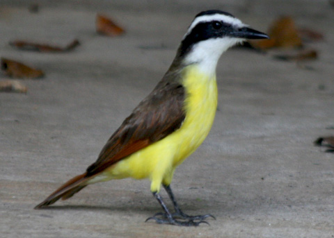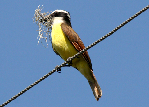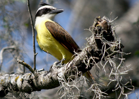 Great Kiskadee Pitangus sulphuratus Native Range: North America and Latin America Notes: a large, stocky, brightly-colored flycatcher common in the tropical Americas; found in brushy woods usually near water.