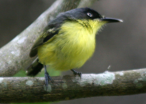 tiny body; bright yellow below; dark charcoal above (Panama; 2008-06-01)